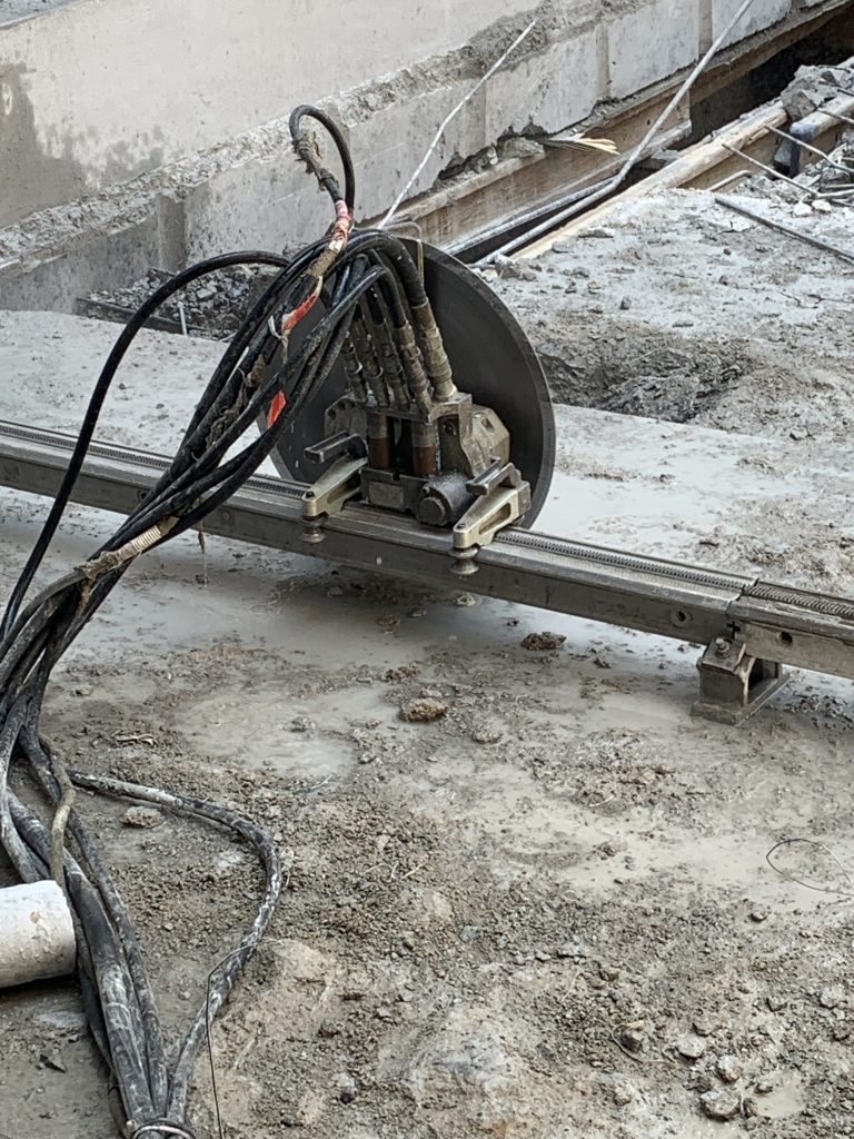 Wire sawing is the process of cutting concrete using diamond imbedded wire. This is a practical solution to cut and demolish large sections of beams, columns, piles, concrete slabs in confined spaces.