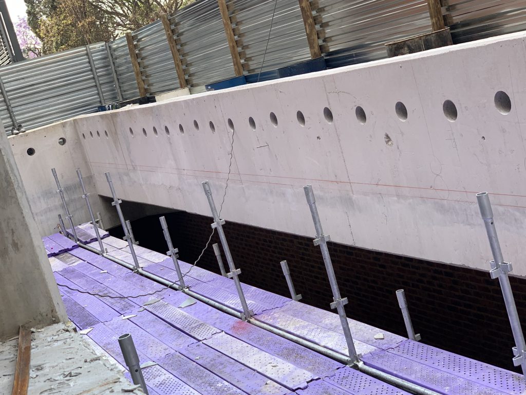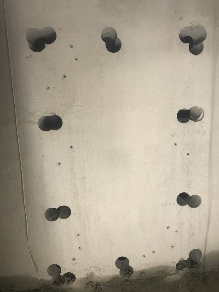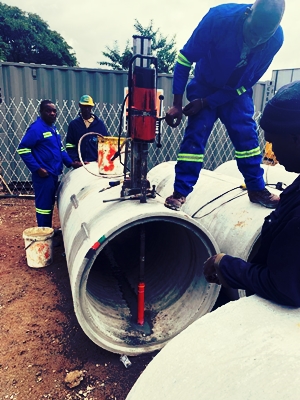 We have drilled a 63mm hole that links up perfecting inline to help laying concrete pipes, the holes act as a locator, as well as a means to control the way a pipe is lowered into position.