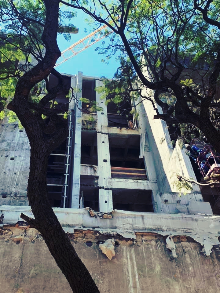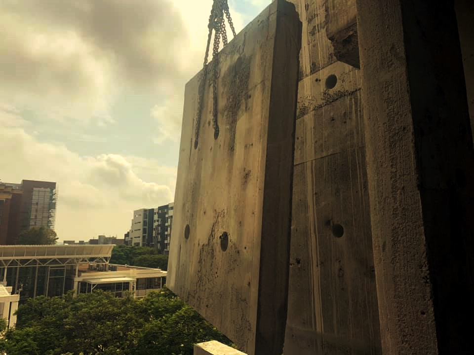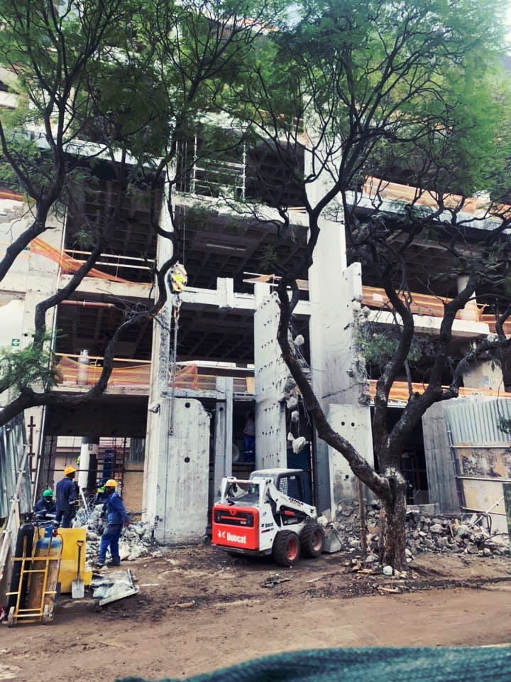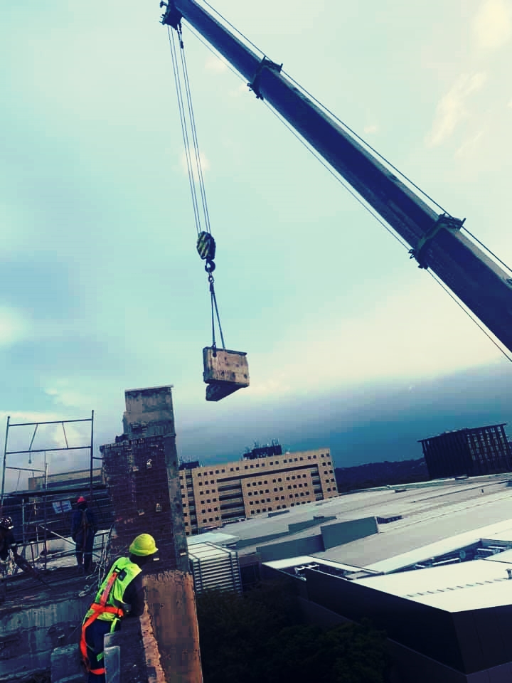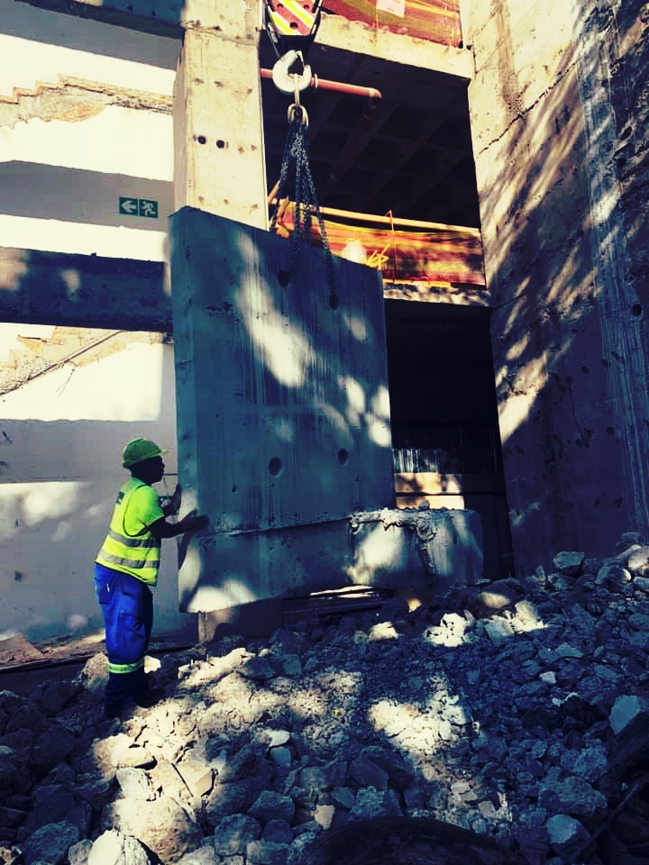 our next tasks involved drilling opening in walls and floors for Hvac, we even had to cut walls in a specific manner to remove old support to replace it with new supports, allowing the building to support the new plans of additional floors. Then came the most enjoyable part and it was removing a double lift shaft 35m up in the air, bringing it down piece by piece, the photos do this project no justice, the teams at DCCS really worked tooth and nail, removing the lift shaft like a tetras block.