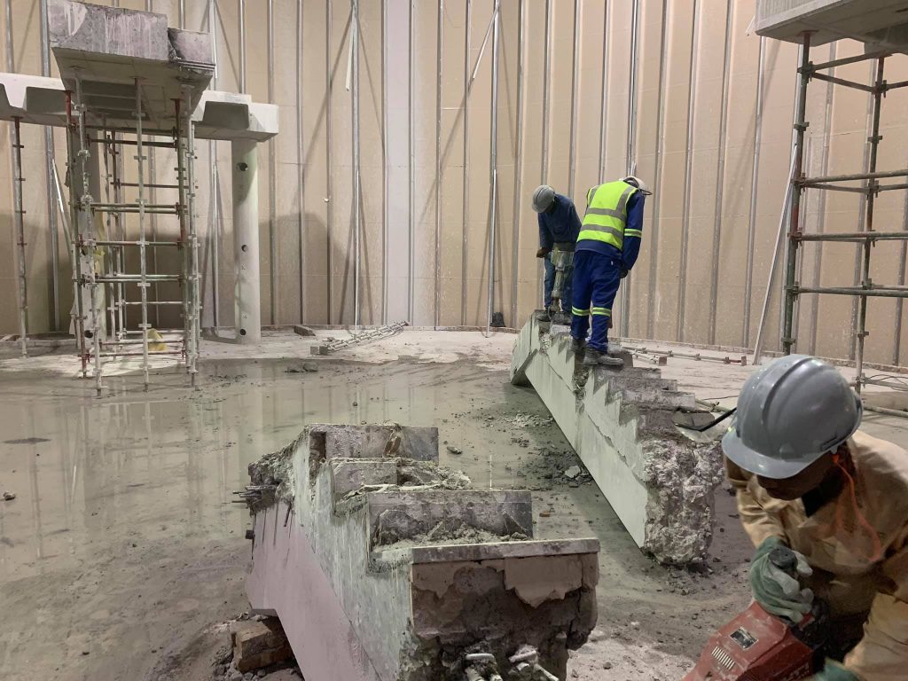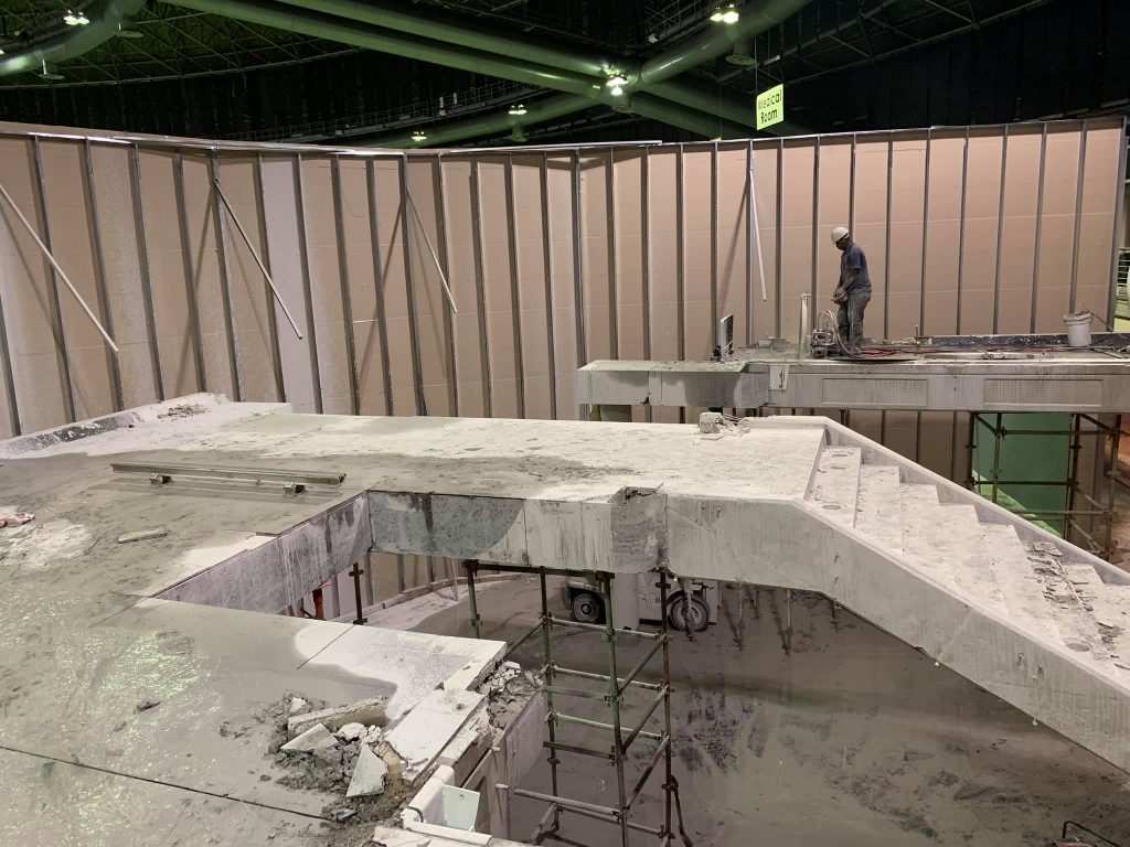 So we got to work immediately, removing the 530mm thick coffer slab, double wide staircase and the 6x 600mm diameter columns spanning 4.2m high. And needless to say we had the removal done in time and ready before the expo, we believe our work ethic and end result speaks for itself.